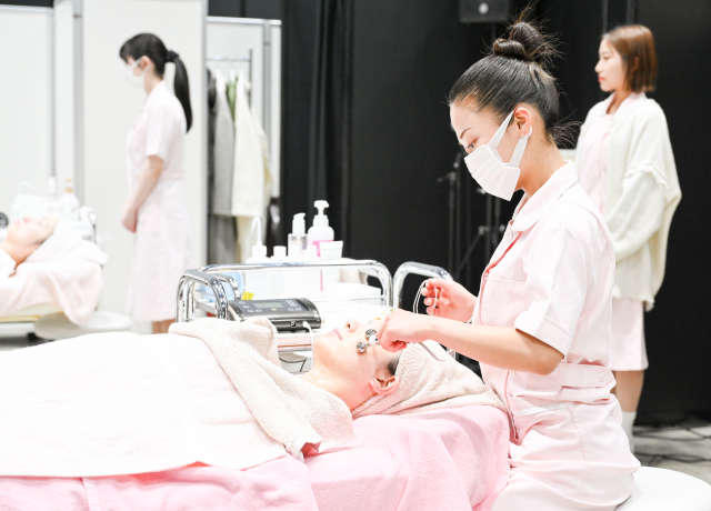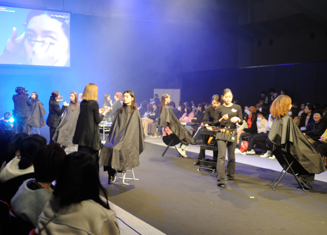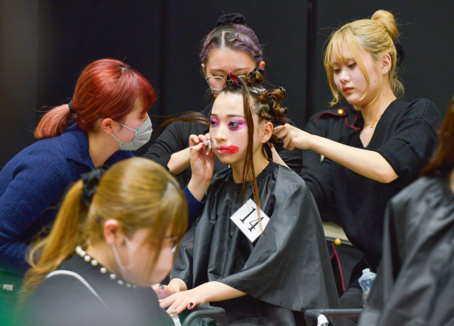 M・A・Cの2023シーズントレンド「90s NUDES」「EVERYDAY GLOW」「GLITTERTEARS」から本学の学生たちが自分でテーマを選び、オリジナルのメイクアップを提案。また、メイクアップコンペティションとして、お客様の前でLIVE形式でメイクパフォーマンスを行いました。