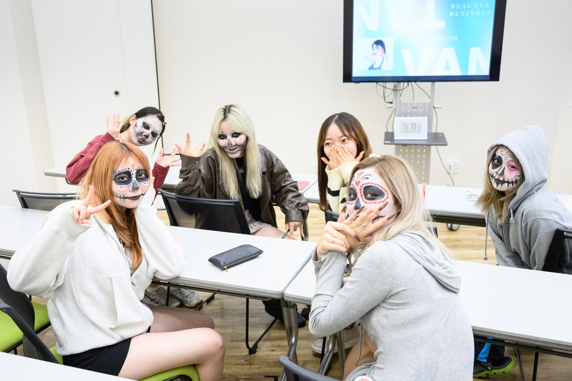 ちなみに……初回授業が行われたのは、ちょうどハロウィンシーズン直前。一部のメンバーは、ヘアメイク授業を受けた直後の受講となりました。MEGUMI講師は、「お上手でいらっしゃいますね」と、ポジティブなメッセージを送ってくださいました!