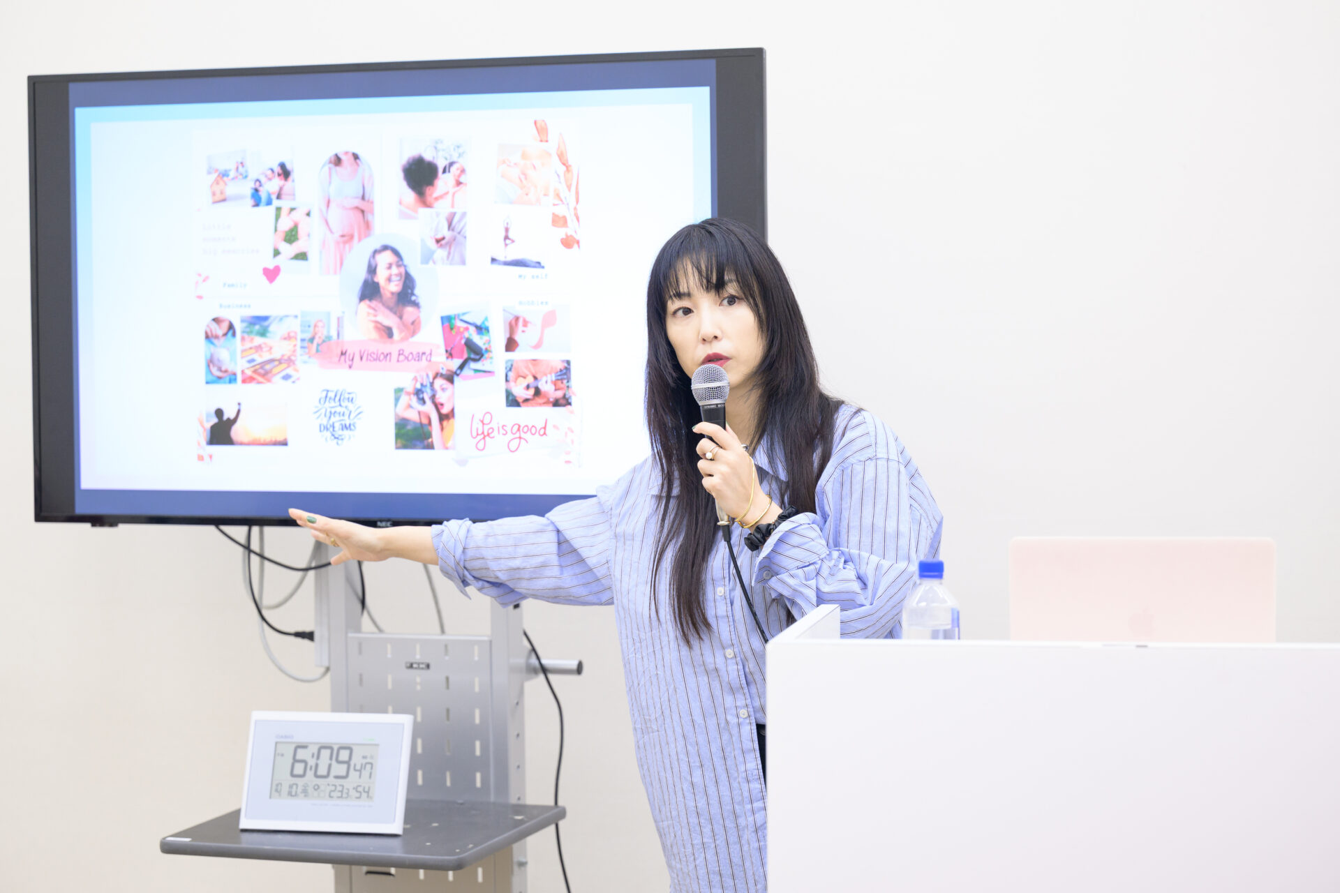 MEGUMI講師「私は、毎年のお正月に1年の事業計画書を書きます!事業計画は、いわば会社の地図です。お金のことはつい曖昧にしがちですが、どれだけ稼ぎたいのかも明確にします。私はどういう生活をしたくて、どういうビジュアルになりたくて、何が欲しいのか、自分はいくら持っていればハッピーなのかを言語化し、明確にしていきます」